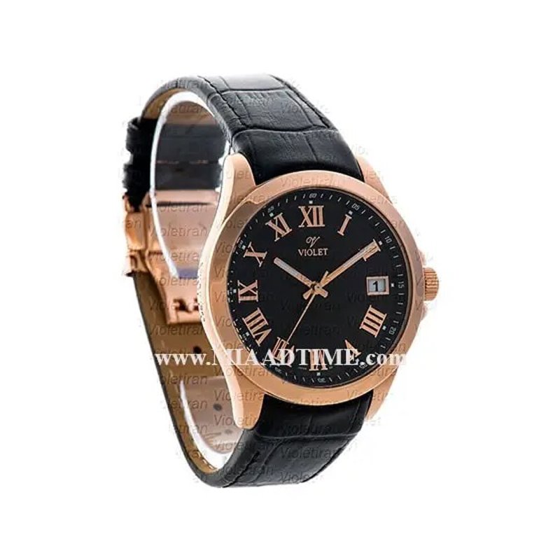 ساعت مچی ویولت مردانه کلاسیک گرد بند چرم رزگلد صفحه مشکی مدل 0460/2G