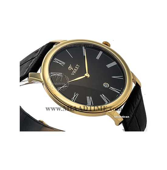 ساعت مچی ویولت مردانه گرد چرمی طلایی صفحه مشکی مدل 0222/2G
