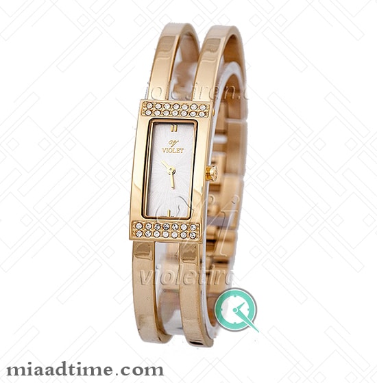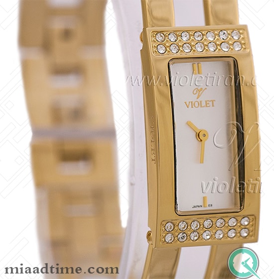 ساعت مچی ویولت Violet | زنانه مستطیل نگین دار طلایی | کد 0245/2