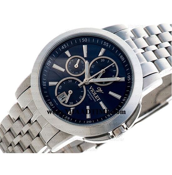 ساعت ویولت Violet زنانه کرنوگراف گرد فلزی استیل صفحه سورمه ای مدل 0409L
