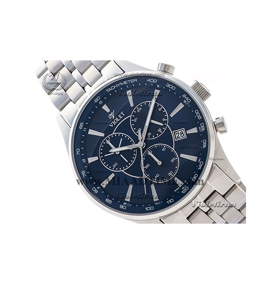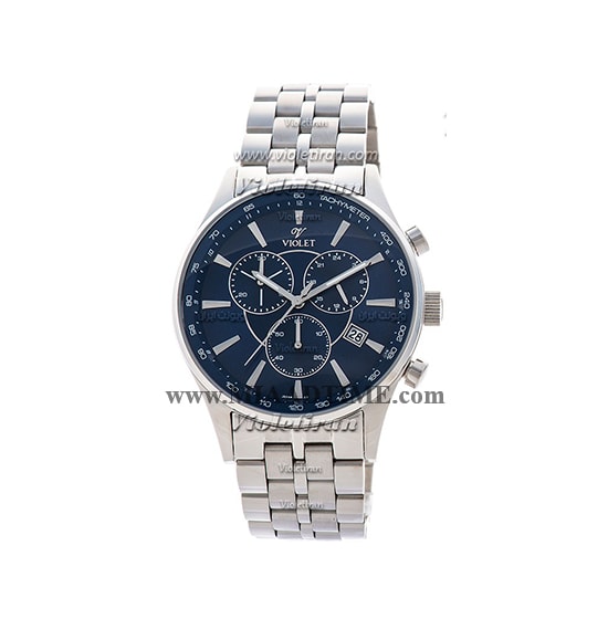 ساعت ویولت Violet مردانه کرنوگراف گرد فلزی استیل صفحه سرمه ای کد 0358G