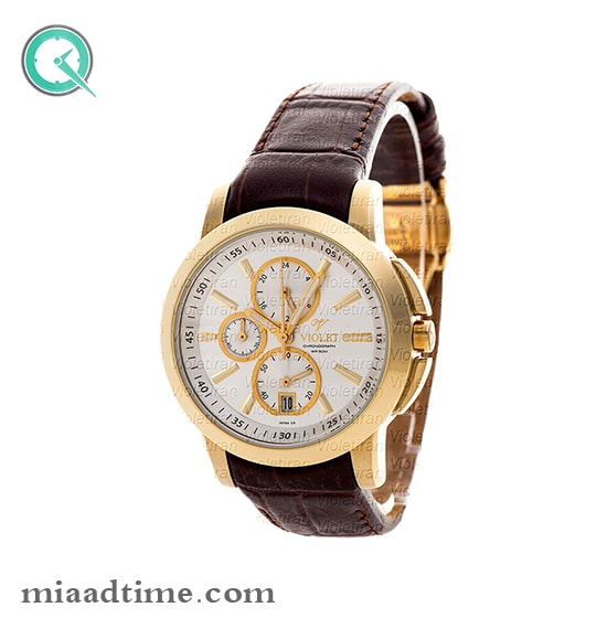 ساعت ویولت Violet زنانه اسپرت گرد چرمی طلایی صفحه سفید کد 0409/2L