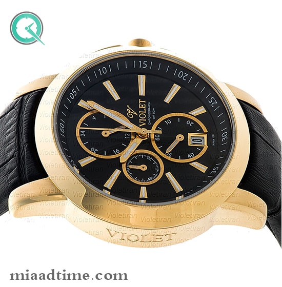 ساعت ویولت Violet زنانه اسپرت گرد چرمی طلایی صفحه مشکی کد 0409/2L