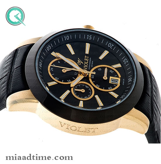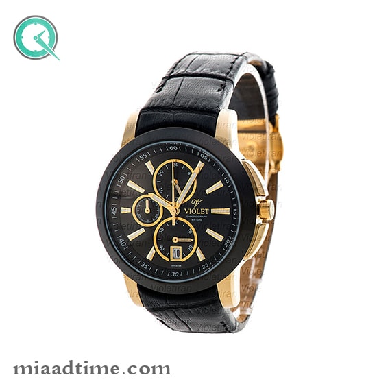 ساعت ویولت Violet زنانه اسپرت گرد چرمی طلایی مشکی صفحه مشکی کد 0409/2L