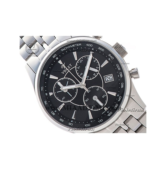 ساعت ویولت Violet زنانه کرنوگراف گرد فلزی استیل صفحه مشکی کد 0358L