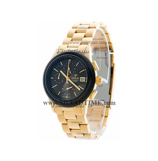 ساعت ویولت Violet زنانه کرنوگراف گرد فلزی طلایی مشکی صفحه مشکی کد 0402/2L