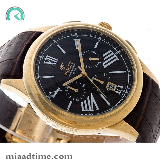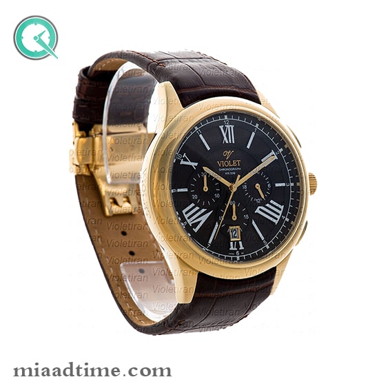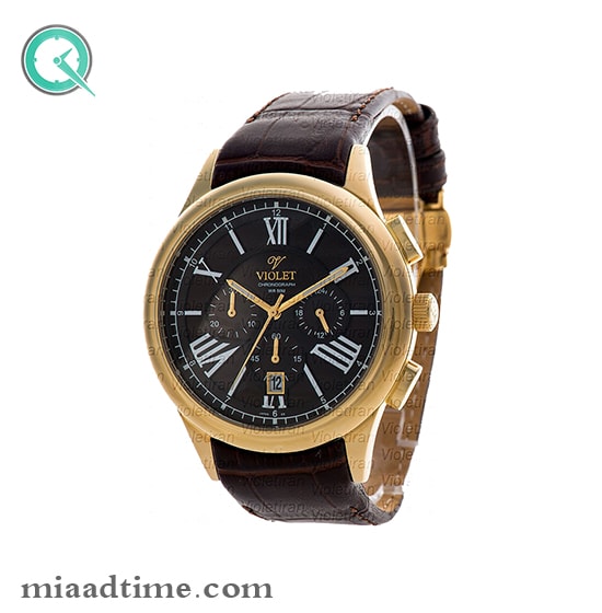ساعت ویولت Violet مردانه اسپرت گرد چرمی طلایی صفحه قهوه ای کد 0401/2G
