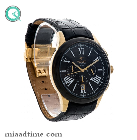 ساعت ویولت Violet مردانه اسپرت گرد چرمی طلایی مشکی صفحه مشکی کد 0401/2G
