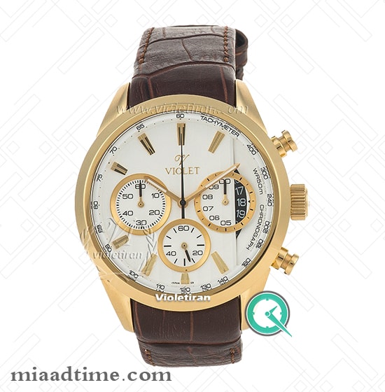ساعت ویولت Violet مردانه | کرنوگراف، گرد چرمی، طلایی صفحه سفید | کد 0320/2G