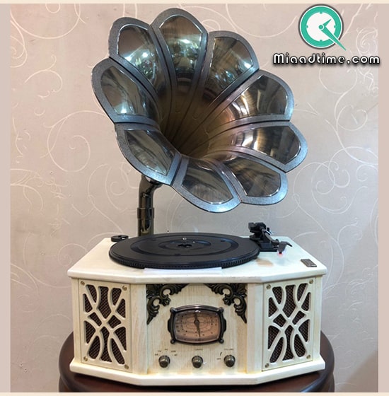 شیپور از جنس فایبر گلاس| گیرنده رادیویی AM / FM قدرت موتور: 3 سرعته 33⅓ / 45/78 دارای بلوتوث بلندگوی استریو با قدرت بالا حافظه USB