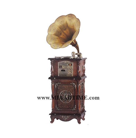 شیپور فلزی، گرام با شیپور کلاسیک قابلیت پخش CD-MP3-DVD ورودی درگاه USB قابلیت اتصال از طریق بلوتوث رادیو استریو 2 موج AM/FM قابلیت پخش نوار کاست | گرامافون با قابلیت پخش صفحه با سه سرعت دور ضبط شده،ورودی درگاه Aux، دارای خروجی های صدا و تصویر، قابلیت پخش صدا به صورت استریو، دارای صفحه LED جهت نمایش عملیات CD، کنترل از راه دور جهت عملیات تنظیم CD-MP3-DVD