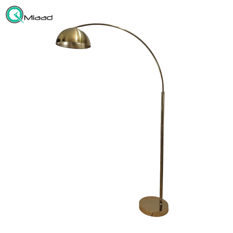 آباژور سالنی مدل 173، آباژور ایستاده مدرن و ظریف با پایه آهنی، دارای 1 سرپیچ و تنوع رنگ بندی با آبکاری فورتیک، فوق العاده با کیفیت، رنگ طلایی
