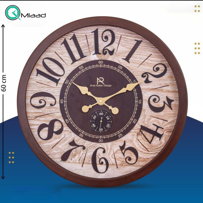 با بدنه چوبی باکیفیت از استحکام قابل قبولی برخوردار می باشد. طراحی اعداد بزرگ باعث خوانایی بیشتر این ساعت دیواری شده است و همچنین لاتین و برجسته بودن آن ها این ساعت را در دسته ساعت های دیواری مدرن قرار می دهد. موتور این ساعت ساخت کشور تایوان می باشد که کیفیت بسیار بالایی دارد و خیال شما را برای انتخاب یک ساعت دیواری جدید و شیک و باکیفیت راحت می کند.
