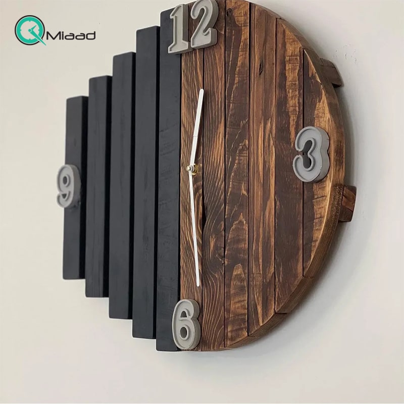 • طراحی مدرن، بدنه از چوب طبیعی و اعداد برجسته بتنی
