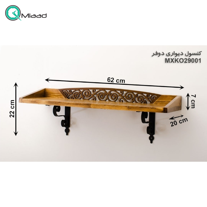 کنسول دیواری مدل دوفر کد MXKO29001 یکی از سری محصولات جذاب میعاد تایم می باشد که در کالکشن اکسسوری چوبی موجود شده است. طبقه دیواری دست ساز، از جنس چوب طبیعی همان گزینهای است که طراحی داخلی منزل شما را کامل میکند. این باکس یا همان شلف دیواری با طراحی منحصر به فرد، جایی برای قرار دادن وسایل دکوری، تزیینی و ... است. در زمانهای گذشته، از طاقچه به منظور قرار دادن وسایل و تزیین دیوار استفاده میشد. اما اکنون باکس های دیواری با طرح و مدلهای متنوع و زیبا جایگزین استفاده از طاقچههای قدیمی شده است. استفاده از این شلف های دیواری هم مزیت کاربردی دارد و هم زیبایی منزل را دوچندان میکند.