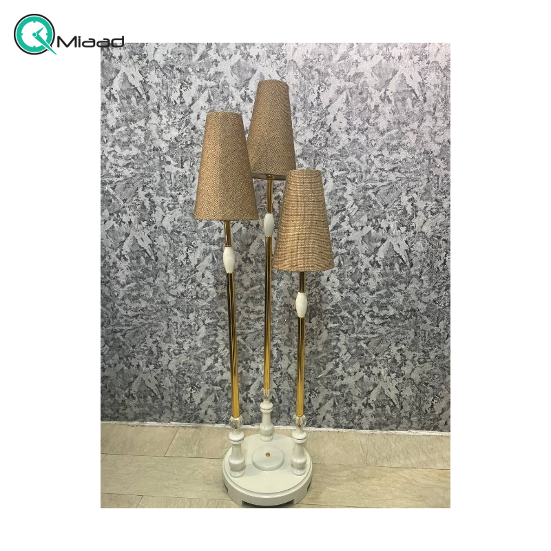 آباژور سالنی سه شعله مدل نیلوفر، آباژور ایستاده با متریال ترکیبی چوب و فلز و آبکاری فورتیک، دارای تنوع رنگ بندی و فوق العاده با کیفیت، رنگ طلایی