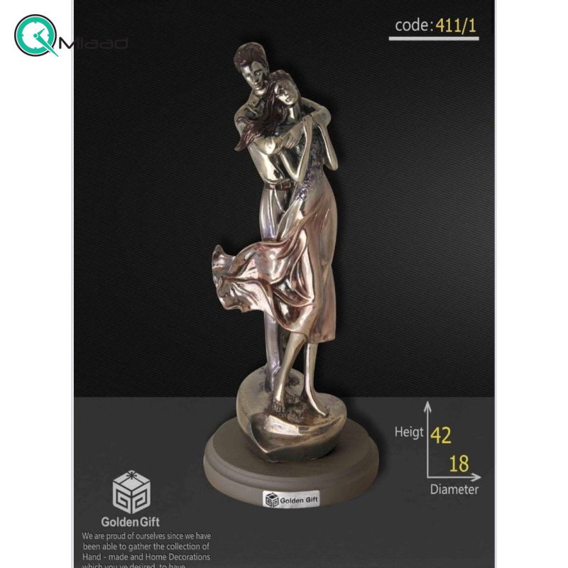 مجسمه طلایی رنگ کد 411، مجسمه طرح هم آغوش رومنس بسیار زیبا با سایز مناسب، ارتفاع 42 سانت