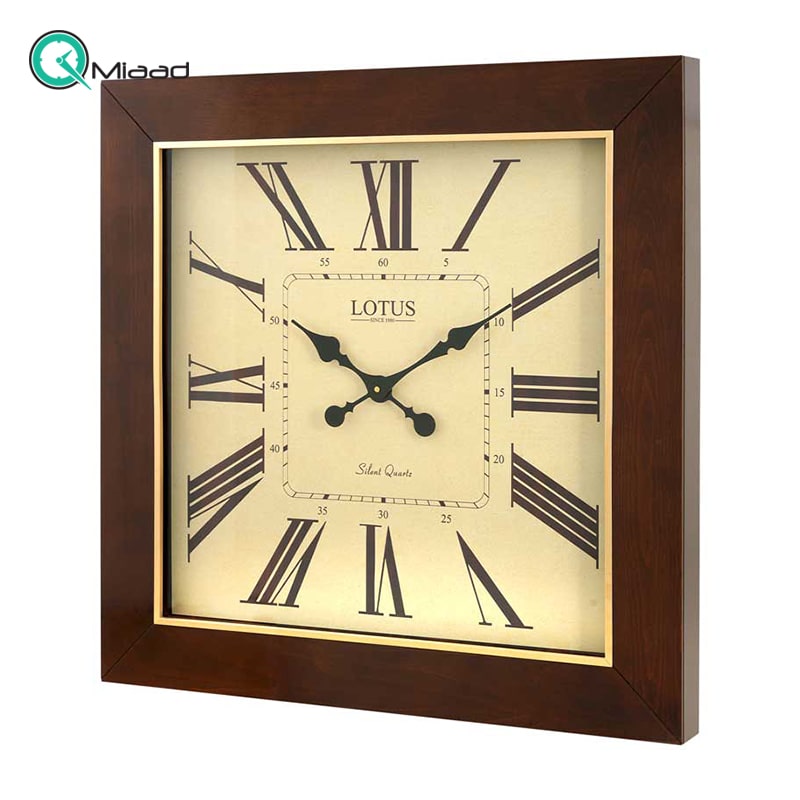 ساعت دیواری‌های چوبی لوتوس که طرح آن به شکل مربع یا مستطیل است به خاطر زاویه ۹۰ درجه و خطوط صافی که دارد باعث نظم دادان به فضا می شود.
