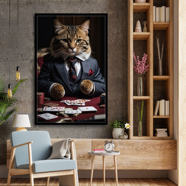 تابلو دکوراتیو شاین کد 415، جدیدترین مدل تابلو با بالاترین کیفیت چاپ، متریال پی وی سی قاب، تابلو هنری با کیفیت فوق العاده و قابل شستشو طرح گربه پوکر باز