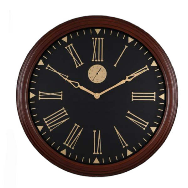 ساعت دیواری والتر Walther | ساعت دیواری سایز 70 با موتور آرامگرد، صفحه مشکی و جزییات طلایی، موتور ثانیه شمار مستقل | کد 7025