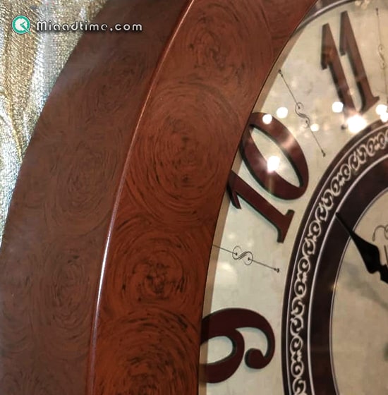 قاب چوبی با کیفیت عالی، دارای اعداد برجسته، دارای موتور ثانیه شمار آرام گرد