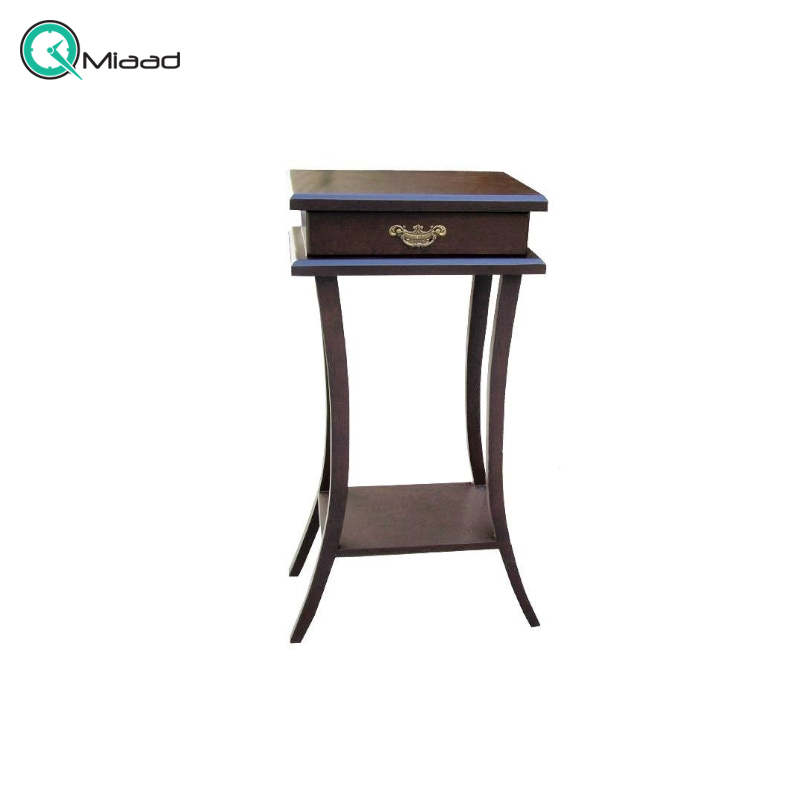 میز تلفن چوبی مدل پرانتزی کد 13322 یک میز تزیینی و دکوراتیو میباشد که میتواند فضایی برای نگه داری لوازم دکوری در اختیار شما قرار دهد. یکی از وسایل سنتی و تزیینی که از دیرباز در منازل و ادارات رایج بوده است میز تلفن است که می توانید تلفن، گرامافون، ضبط، رادیو تزیینی و وسایل مشابه خود را روی آن قرار دهید. در واقع پایه یا میز تلفن نه تنها وسیله ای برای قرار دادن گوشی در یک مکان خاص است، بلکه یک وسیله تزیینی زیبایی است که در آپارتمان های شیک یافت می شود. میزهای تلفن معمولا دارای ابعاد کوچک و جمع و جور هستند که در یک گوشه میتواند قرار بگیرد و البته مکان استفاده از میزهای تلفن کاملا سلیقه ای است.