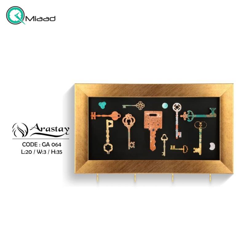 جاکلیدی مستطیلی مدل GA 064 رنگ طلایی یکی از سری محصولات جذاب میعاد تایم می باشد که در کالکشن اکسسوری چوبی موجود شده است. جذابیت زیبایی چوب غیرقابل انکار است و محصولات چوبی محبوبیت بسیاری دارد. جا کلیدی به عنوان یک ابزار سازمانی عمل می کند که برای ذخیره ایمن کلیدها و جلوگیری از احتمال گم شدن آنها استفاده می شود.