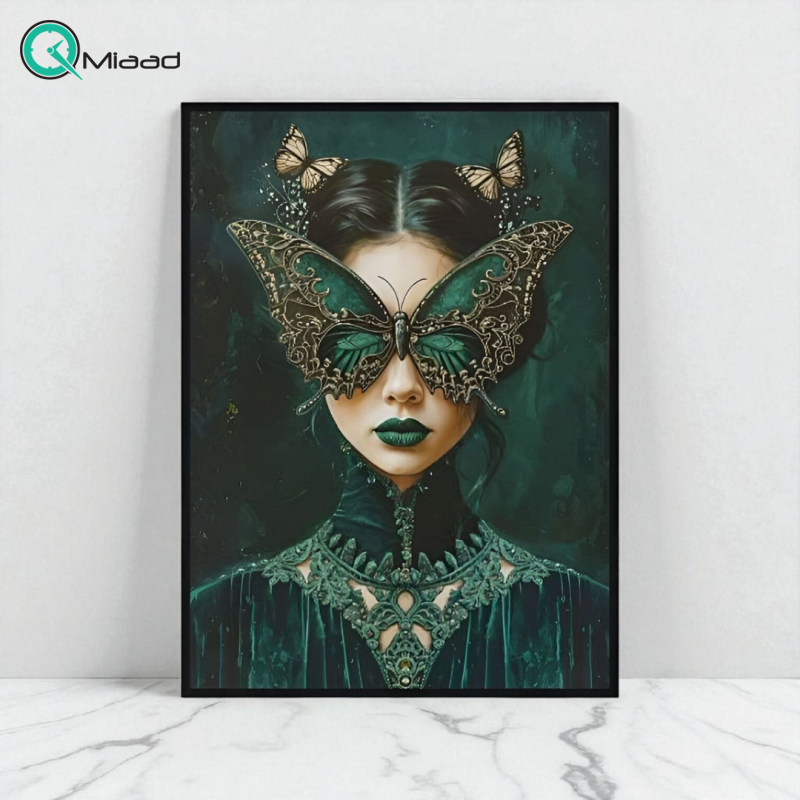تابلوی دختر پروانه‌ای اثری چشمگیر است که دختری را با ماسکی به شکل پروانه و لباس‌هایی با جزئیات تزئینی به تصویر می‌کشد. این ترکیب خلاقانه، فضایی مرموز و هنری ایجاد کرده و با رنگ‌های چشم‌نواز و طراحی منحصربه‌فرد خود، می‌تواند انتخابی عالی برای علاقه‌مندان به هنر مدرن و دکوراسیون‌های خاص باشد. از فروشگاه میعاد تایم این تابلو هنری خاص را تهیه کرده و جلوه‌ای منحصربه‌فرد به فضای خود ببخشید.