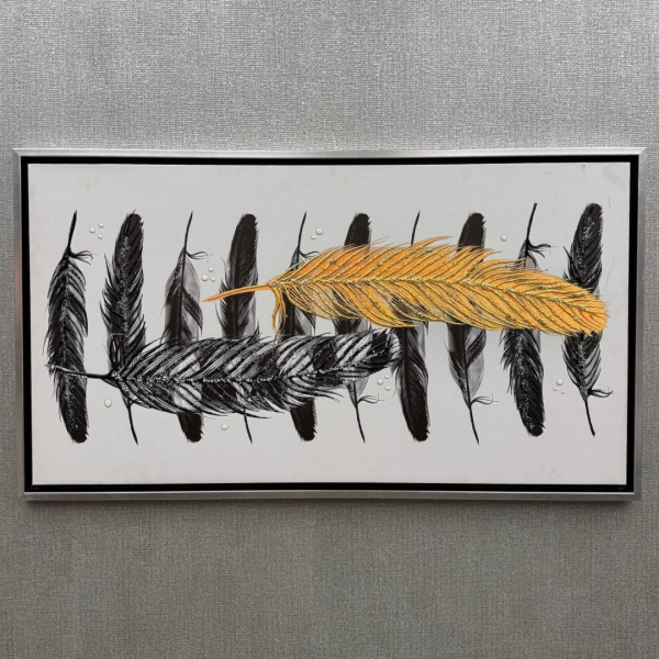 این اثر هنری با ترکیب رنگهای مشکی و طلایی، تصویری چشمنواز از یک پر طلایی برجسته در میان پرهای تیره را به نمایش میگذارد؛ تابلویی که بیش از آنکه فقط تزئینی باشد، حامل مفهومی عمیق از خاصبودن، امید و درخشش در دل یکنواختی است. این تابلو، انتخابی هوشمندانه برای فضاهایی است که به دنبال ظرافت، تمایز و انرژی مثبت هستند. جلوه برجستهی پر طلایی در پسزمینهی تیره، تضادی هنری ایجاد کرده که نگاهها را به خود جذب میکند و حس اصالت و لوکسبودن را به فضا میبخشد. مناسب برای دکورهای مدرن، کلاسیک یا فضاهایی با تم تیره و طلایی که میتواند انتخاب نهایی شما باشد تا از میعاد تایم این اثر چشمگیر را سفارش دهید و به دکور خود رنگ و لعاب اصیل بودن را اضافه کنید.