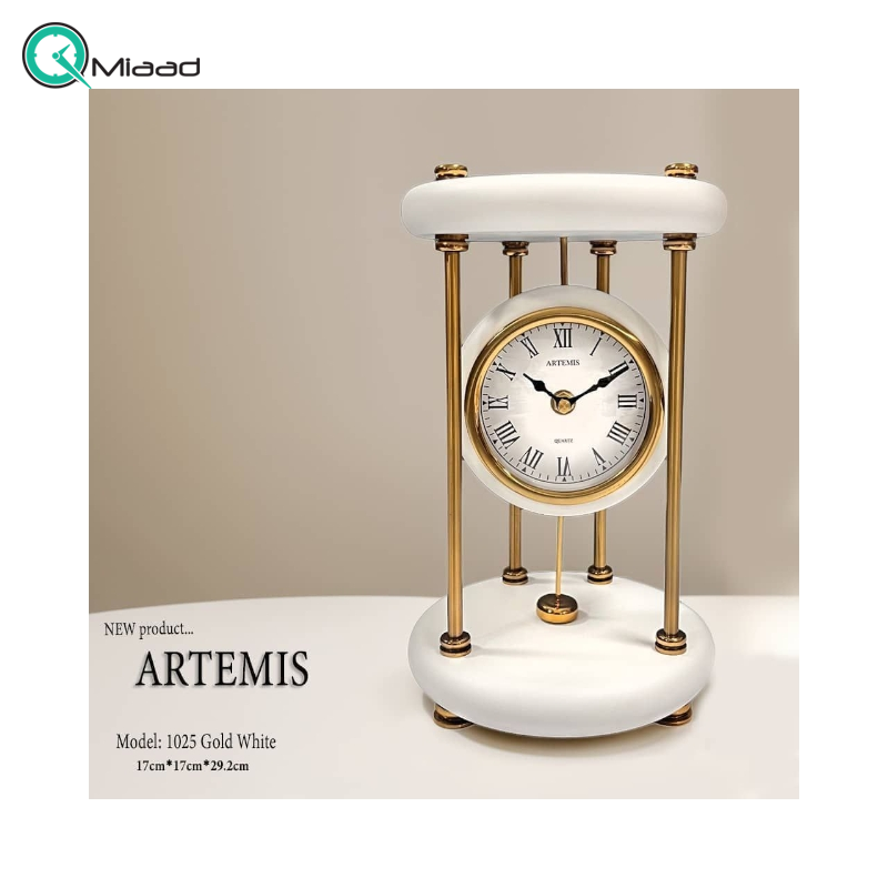 ساعت رومیزی فلزی آرتمیس مدل 1025 سفید یکی از جدیدترین محصولات خوش نقش و مدرن میعاد تایم می باشد که امروز در بخش ساعت رومیزی برای شما موجود کرده ایم. ساعت های مورد استفاده روی میز معمولا جمع و جور هستند. ساعت های رومیزی را می توان روی قفسه، روی طاقچه، بالای شومینه، کنار مبل، روی میز عسلی، کنار تخت، یا روی میز اداری قرار داد. افرادی که صبح دیرتر از خواب بیدار می شوند باید از ساعت های رومیزی استفاده کنند زیرا این سری محصولات علاوه بر زیبایی و تنوع بالا، هدف دیگری جز بیدار کردن شما ندارند. معمولاً افراد از این ساعت ها برای بیدار شدن از خواب یا یادآوری زمان یا قرار ملاقات استفاده می کنند.