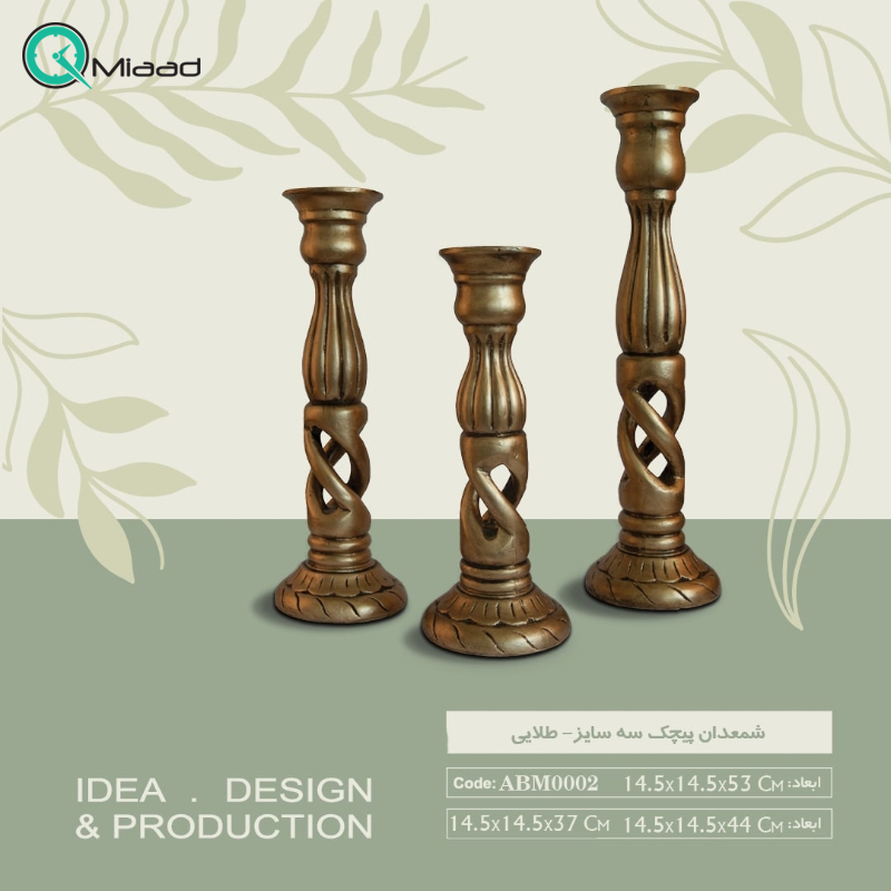 شمعدان مدل پیچک کد ABM0002 رنگ طلایی از سری محصولاتی تزیینی و مجسمه میعاد تایم می باشد،که زیبایی دکور شما را چند برابر می کند. شمعدان که به عنوان جا شمعدانی نیز شناخته می شود، یک قطعه تزئینی است که به هر فضایی گرما و ظرافت می بخشد. به طور معمول از فلز یا کریستال ساخته شده است، دارای شاخه ها یا بازوهای متعددی است که شمع های جداگانه را نگه می دارد. طراحی می تواند از ساده و مینیمالیستی تا آراسته و با جزئیات پیچیده متفاوت باشد. شمعدان برای قرن ها در فرهنگ های مختلف مورد استفاده قرار گرفته است و اغلب با رویدادهای رسمی مانند عروسی یا مراسم مذهبی مرتبط است.
