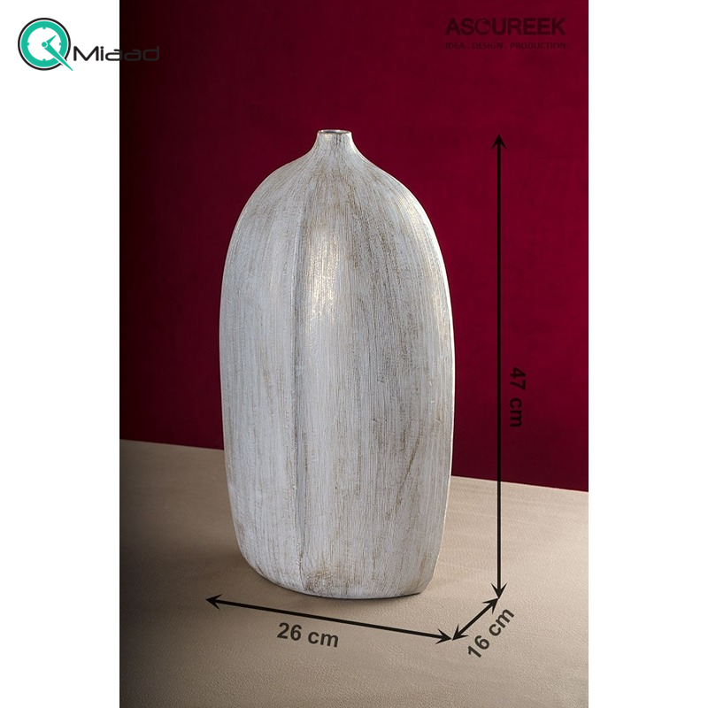 با محصول دیگر از سری طیف محصولات آسوریک همراه شما هستیم. گلدان ساده و مینیمال دست ساز برند آسوریک که با ظرافت خاصی طراحی و تولید گردیده است. این گلدان طرح آونگ با رنگ سفید طلایی می باشد. این محصول یک هدف دوگانه دارد، هم به عنوان یک قطعه زینتی و تزیینی و هم به عنوان یک گلدان عملی برای نگهداری گل های طبیعی و مصنوعی کاربرد دارد. همچنین این محصول طی 10 تا 20 روز کاری برای شما ارسال خواهد شد.