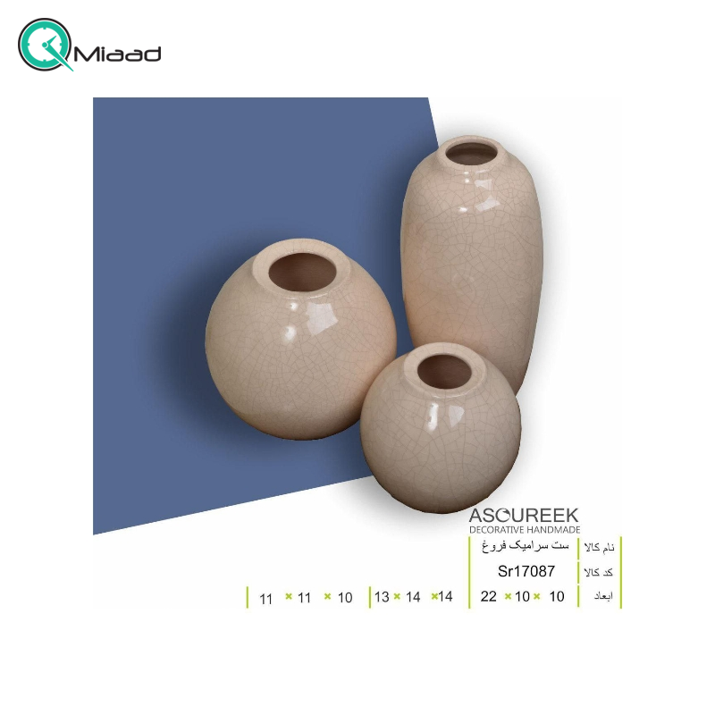 گلدان سه تکه مدل فروغ کد sr17087 رنگ سفید از سری محصولات برند آسوریک می باشد که در دسته گلدان دکوری فروشگاه میعاد تایم برای شما موجود شده است. در ادامه بیشتر در مورد این گلدان دکوری زیبا برای شما توضیحات لازمه را ارائه می دهیم.