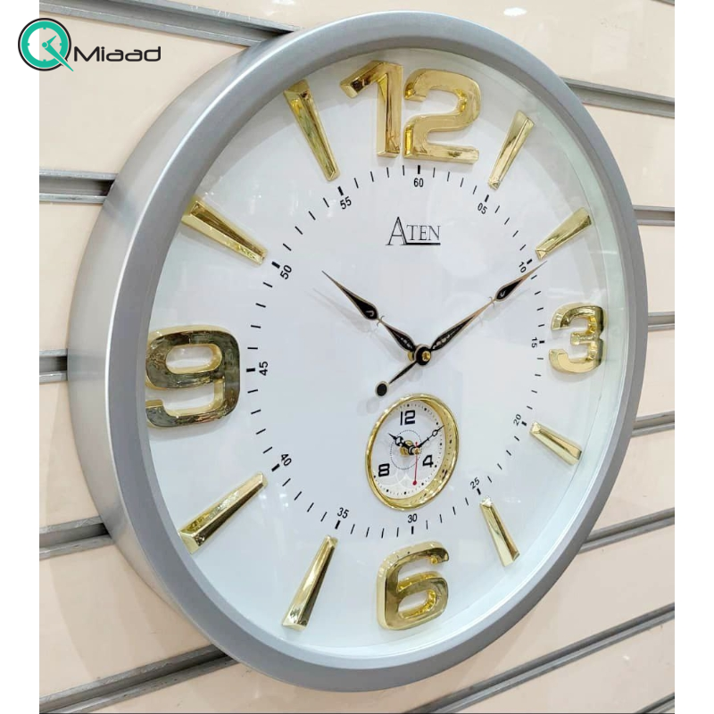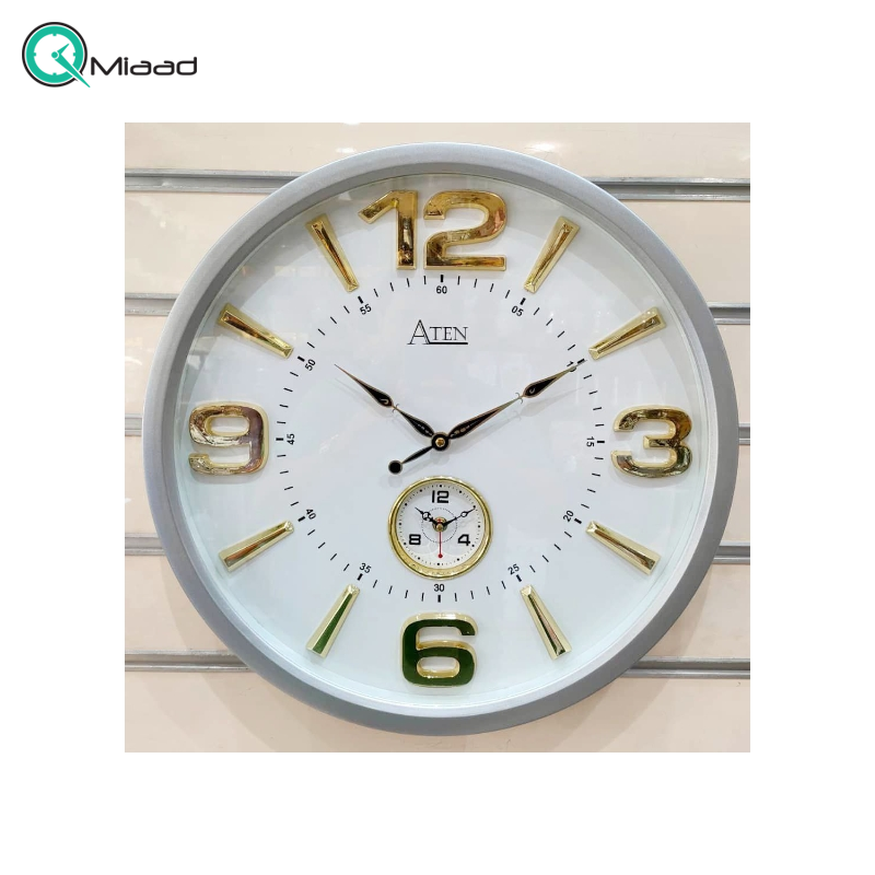 ساعت دیواری آتن دو زمانه رنگ طوسی ساعت دیواری فروشگاه میعاد تایم می باشد.
