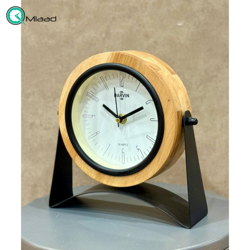 ساعت رومیزی مدرن داروین مدل 1014، ترکیبی چشمنواز از چوب و فلز | طراحی مینیمال و شیک برای میز کار و دکوراسیون امروزی