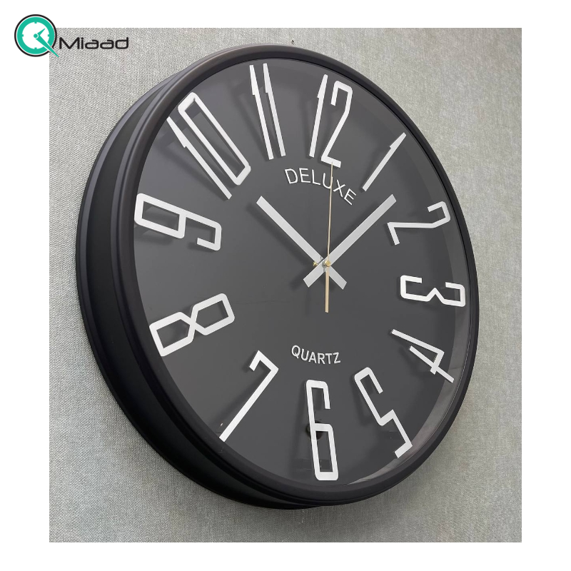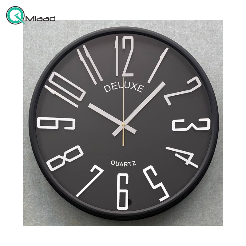 ساعتی بسیار زیبا و مینیمال با ترکیب رنگ مشکی نقره ای از برند دلوکس که می تواند هر دیوار خالی را زیباتر کند. صفحه مشکی با جزییات روی صفحه ساعت و بدون هر جزییات اضافی به چشم نواز شدن این محصول کمک کرده است. این ساعت و تمام جزییات خیلی ظریف طراحی و تولید شده است. فونت لاتین اعداد روی صفحه ساعت بسیار چشمگیر و نوین می باشد و این ساعت مدرن را زیباتر کرده است.