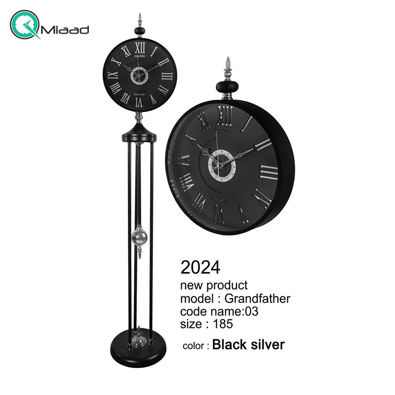 ساعت ایستاده دیلینگ مدل 03 رنگ مشکی نقره ای یک مدل بسیار زیبا از ساعت ایستاده موجود شده در میعاد تایم می باشد. ساعت های ایستاده در قدیم به صورت چوبی و بزرگ بودند و علاوه بر ظاهر بسیار قدیمی و نوستالژی خود، حس خوبی هم منتقل می کردند. امروزه هم ساعت های ایستاده طراحی بسیار مدرنی را کسب کرده اند و شرکت های مختلف، ساعت های ایستاده و کنارسالنی را خلق و به منصه ظهور گذاشتند که واقعا میتواند ظاهری شکیل و مدرن را به هر دکوراسیونی اضافه کند.