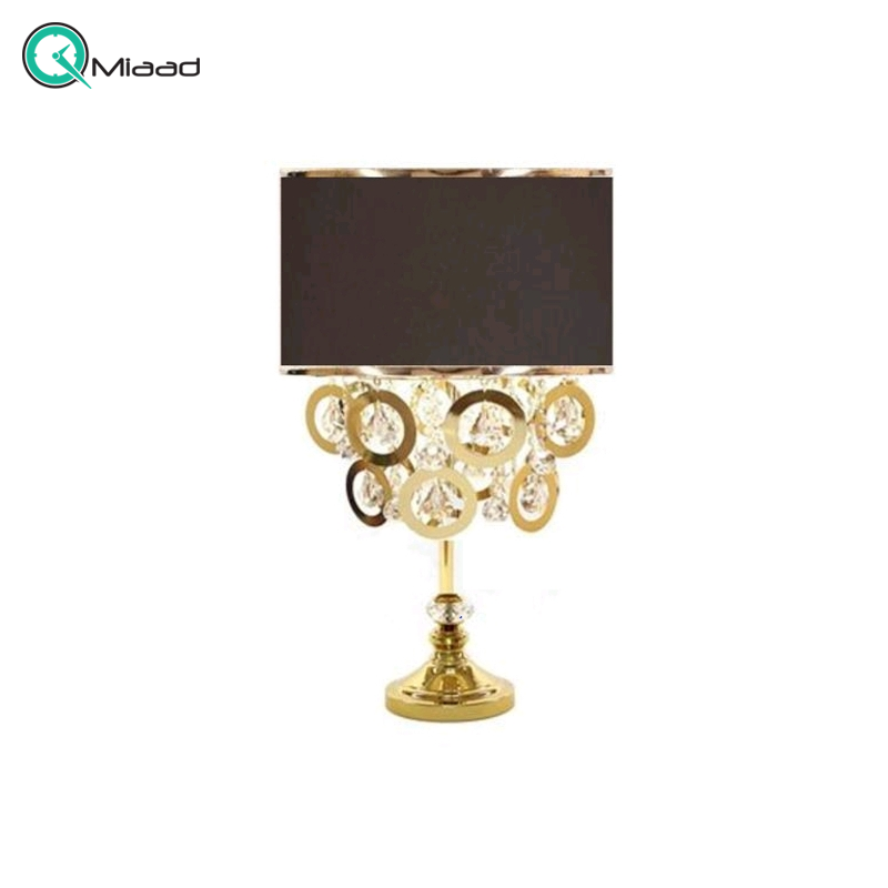 آباژور رومیزی مدل 101، آباژور رومیزی با متریال طلق و پارچه کلاهک، دارای 1 سرپیچ معمولی E27، تعداد 20 آویز و 10 حلقه بزرگ و 15 حلقه کوچک، همچنین قابل سفارش در دو مدل آویز دار و بدون آویز، رنگ طلایی