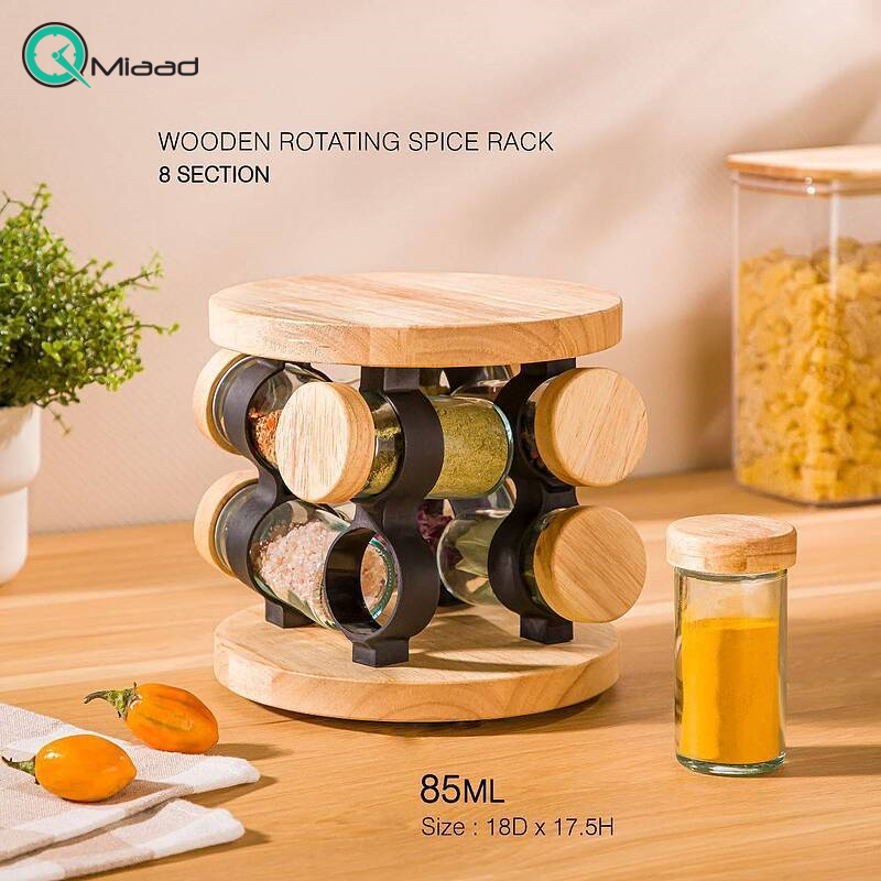 طراحی چرخشی برای دسترسی آسان، شامل 12 ظرف ادویه، جنس بدنه چوبی، مناسب برای انواع ادویهها، صرفهجویی در فضا