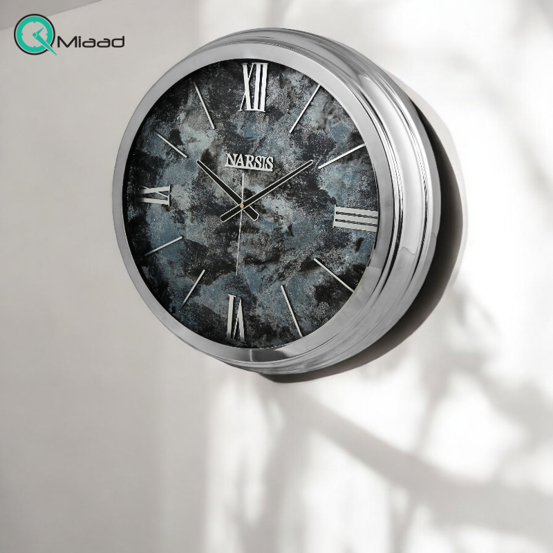 ساعت دیواری فلزی نارسیس مدل 004 رنگ سیلور مشکی از سری محصولات ساعت دیواری مدرن فروشگاه اینترنتی میعاد تایم می باشد.