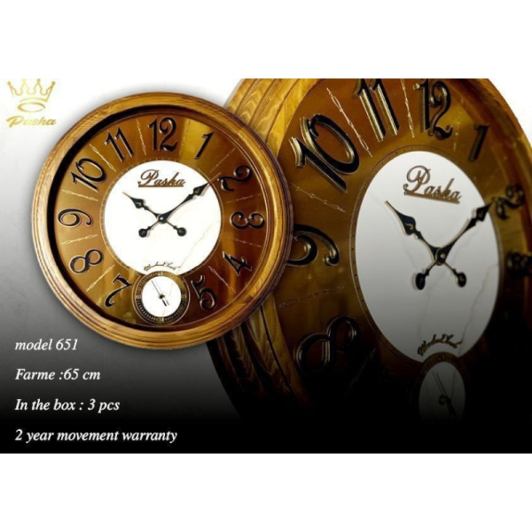 ساعت دیواری پاشا با چوب طبیعی سایز 65 مدل 651 از سری ساعت دیواری های جدید فروشگاه میعاد تایم می باشد. ساعت دیواری همواره یکی از اجزای اصلی تزیین بوده است. شما می توانید هر مکان یا فضایی را با تزئین آن با ساعت های دیواری منحصر به فرد زیبا کنید. می توان استدلال کرد که ساعت دیواری یکی از بهترین گزینه ها برای اندازه گیری زمان باقی می ماند، زیرا اکثر مردم در موارد مختلف برای شناسایی زمان به این دستگاه تکیه می کنند.