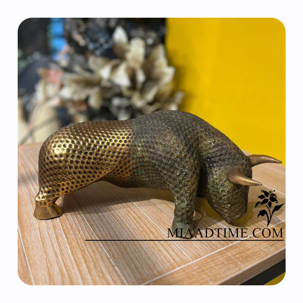 مجسمه گاو چکشی پتینه زنگ آهن سر پایین با طراحی عجیب و جذاب و جذابیت مسحورکننده خود به نمادی محبوب از خلاقیت و بیان هنری تبدیل شده است. آثار هنری دست ساز (هر محصول دارای رنگ بندی منحصر به فرد خود است)، با کیفیت ترین رزین در بین تمام رنگ ها، و پتینه ای ساخته شده از تمام رنگ های وارداتی با رنگ یکنواخت در این محصول استفاده شده است. این محصول میتواند هدیه ای بسیار زیبا ویژه برای خانم ها باشد.