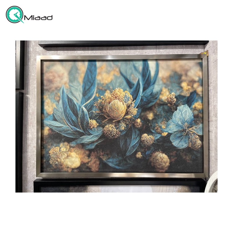 امروز برای شما یک محصول بسیار خارق العاده از سری تابلو های تزیینی میعاد تایم را موجود کرده ایم که در مورد این محصول اطلاعات بهتری را در ادامه به شما توضیح خواهیم داد. در این قسمت سری دوم تابلو شاینینگ جدیدی را برای شما موجود کرده ایم. این نقاشی هنری از نظر بصری جذاب، یک الگوی انتزاعی منحصر به فرد از نمایش برگ و گیاهان مختلف با ترکیب رنگ آبی و طلایی می باشد.