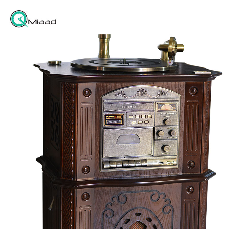 دارای بدنه ای از جنس چوب باکیفیت می باشد. انواع مدل های گرامافون با توجه سبک طراحی زیبا و جذابی که دارند جلوه زیبایی به دکور منزل و یا محیط کاری شما می دهند، گرامافون ها ایستاده علاوه بر تاثیرگذاری بر فضای ظاهری محیط از امکاناتی برخوردار هستند که می توان از آن ها به عنوان یک سیستم پخش نیز استفاده کرد از جمله درگاه USB , امکان اتصال بلوتوث , پشتیبانی از کارت های حافظه SD CARD , پخش رادیو 2 موج و پخش تمامی صفحات گرامافون که اصلی ترین و نوستالژیک ترین کاربرد انواع مدل های گرامافون های ایستاده و رومیزی نیز می باشد.