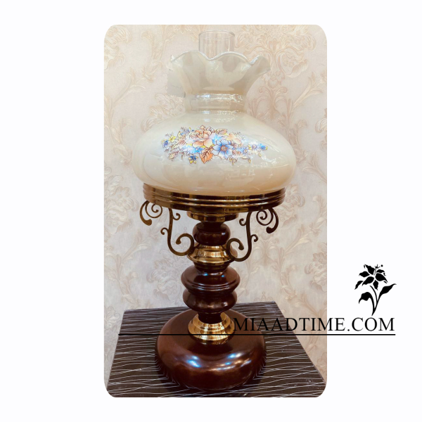 چراغ خواب و آباژور رومیزی چوبی طرح گردسوز با چوب راش گرجستان مناسب اتاق خواب و سالن پذیرایی مدل 3003