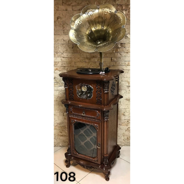 گرامافون ایستاده نیمه فول والتر مدل 108 شیپور فلز رنگ از سری گرامافون های جدید میعاد تایم می باشد. در ابتدا، تلاش قوی انسانی برای ضبط صدا روی گرامافون با چرخاندن صفحه مورد نیاز بود. متعاقباً، نسخههای خودکار در دسترس قرار گرفتند که انرژی را از محیط اطراف خود میکشیدند، که امکان ضبط بدون نیاز به کار دستی مداوم را فراهم میکرد. این یک پیشرفت تکنولوژیکی بود. این منجر به رقابت بیشتر بین فونوگراف و گرامافون شد. بعدها، تولیدکنندگان لوازم الکترونیکی مدرن مانند رایانه، تلویزیون و تلفن شروع به استفاده از اختراعات موجود مانند دستگاه پخش ضبط به عنوان الهام بخش شگفتی های فناوری خود کردند.