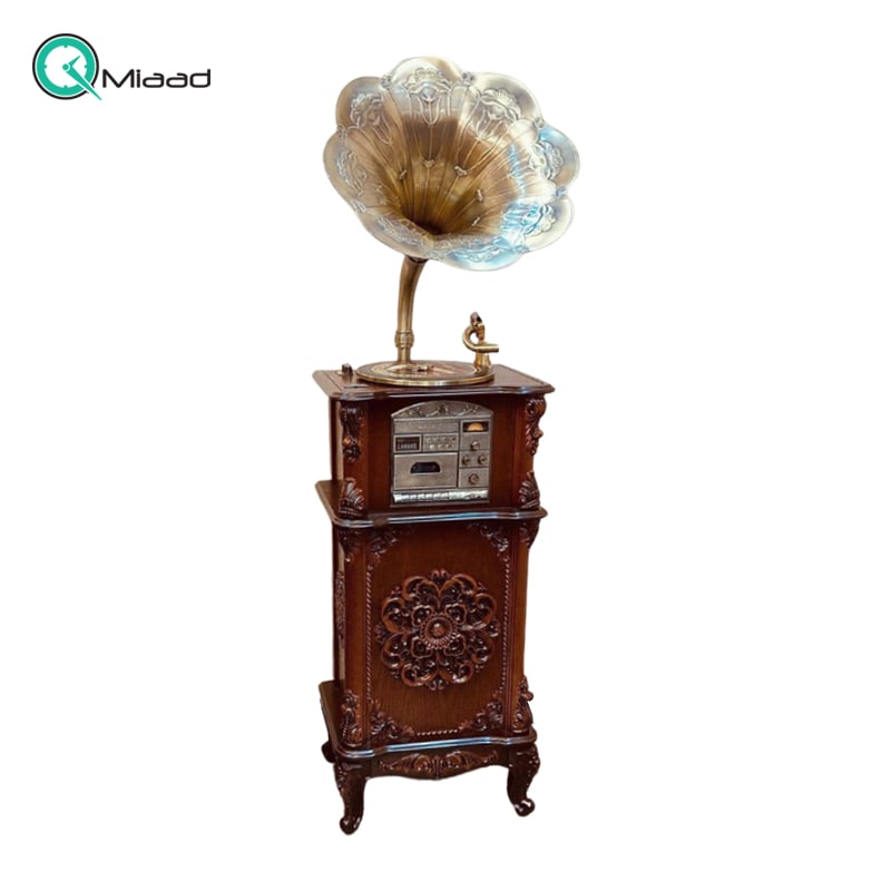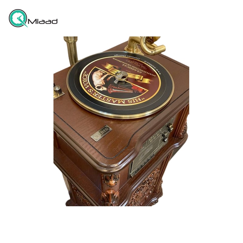 گرامافون مبله و ایستاده والتر مدل 201 ساخت شرکت معتبر والتر و دارای بدنه ای از جنس چوب باکیفیت می باشد. این محصول به زیبایی و کیفیت خاص خودش یکی از محصولات محبوبی است که در دسته گرامافون میعاد تایم موجود شده است. از دهه 1890 تا 1990، گرامافون، که گاهی به عنوان فونوگراف نیز شناخته می شود، محبوب ترین فناوری برای بازتولید صدا بود. زمانی که در اواخر سلطنت ناصرالدین شاه وارد ایران شد به حافظ الصوت یا حبس الصوت معروف بود. در واقع، صداهایی که قبلاً روی صفحه ضبط شده اند توسط گرامافون بازتولید می شوند. این وسیله از چندین قطعه تشکیل شده اند. بلندگوی پخش کننده صدا به شکل قیف که اغلب طلایی رنگ است. یک دیسک روی یک صفحه گردان که با لغزش روند پخش صوت صورت میگیرد. یک سوزن روی یک لوله نصب می شود و به دیسک متصل می شود و یک صفحه مومی نرم روی صفحه چرخان قرار می گیرد و زیر سوزن می چرخد. البته آخرین نسل گرامافون ها از فناوری ها و پورت های جدید استفاده می کنند و دیگر موسیقی را روی دیسک های دایره ای ضبط و پخش نمی کنند. علاوه بر این، برخی از گرامافون های مدرن در سبک های کاملاً متمایز از سبک های کلاسیک ساخته می شوند. نکته مهم این است که گرامافون های مدرن همان ظاهر نوستالژی و کلاسیک خود را حفظ کرده و با امکانات مدرن تقویت شده اند.